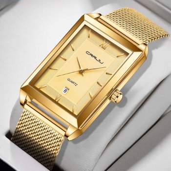 Elegant Gold Women’s Square Watch with Adjustable Mesh Steel Band