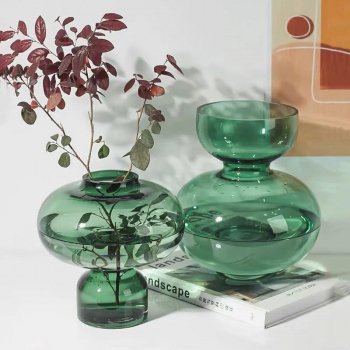Modern Green Glass Gourd Vase – Geometric Hydroponic Flower Pot