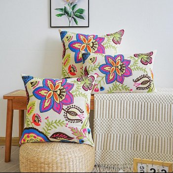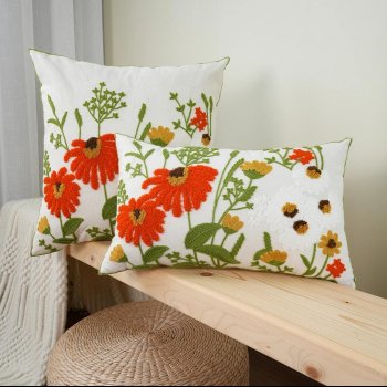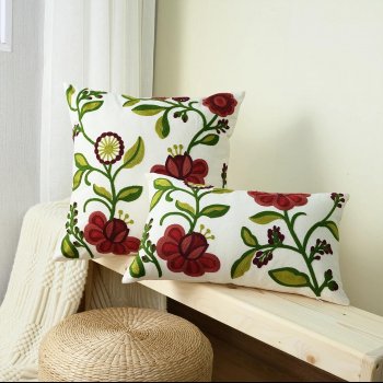 Pure Cotton Embroidered Tulip Throw Pillow Cover – Spring & Summer Patio Decor