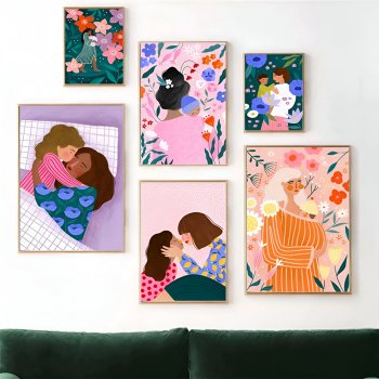 Motherhood Canvas Wall Art – Loving Mum and Children Floral Portrait Print