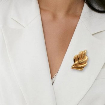 Geometric Leaf Embossed 18K Gold PVD Plated Brooch Pin – Unisex Fashion Jewelry