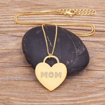 Personalized MOM Heart Pendant Necklace with Zircon – Trendy Gift for Her