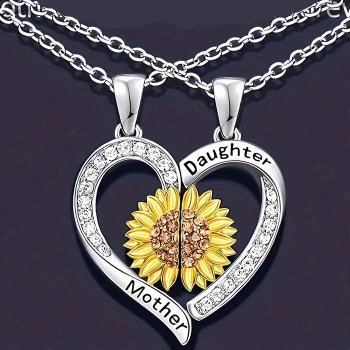 Sunflower Magnetic Heart Necklace Set for Mom & Daughter