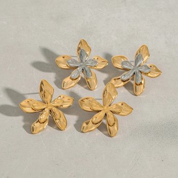 Elegant Two-Tone Flower Stud Earrings in 18K Gold Stainless Steel