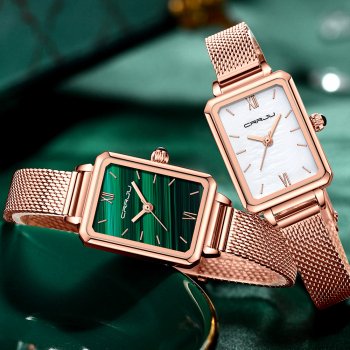 Elegant Green Malachite Dial Women’s Waterproof Quartz Watch